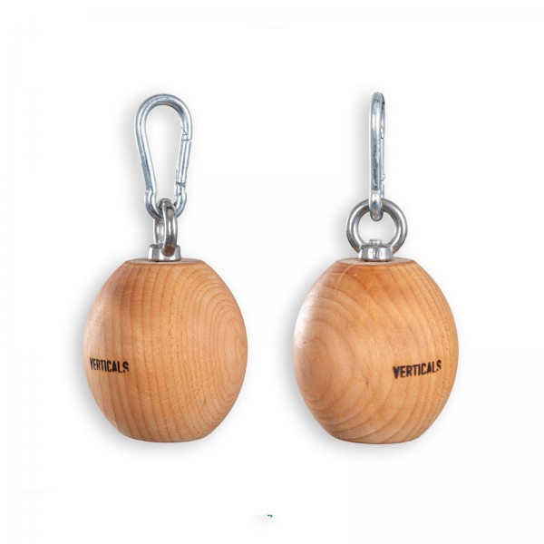 Recibes un par de elipsoides de madera de haya con anillas de acero inoxidable y mosquetones de hierro galvanizado.