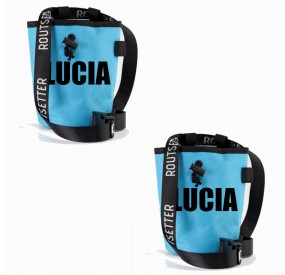 Obtenez 2 sacs à magnésie personnalisés identiques —même couleur et même mot (pour vous et votre partenaire de cordée)—