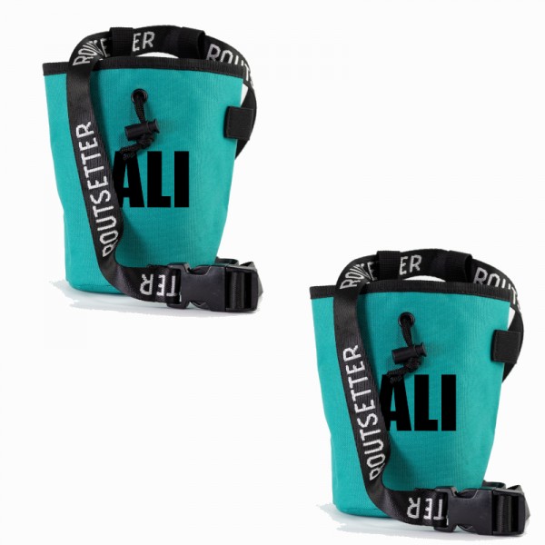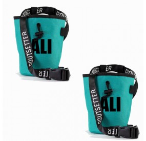 Ottieni 2 sacche porta-magnesite personalizzate uguali —stesso colore e stessa parola (per te e per il tuo compagno/a di cordata)—