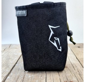 Crie sua própria bolsa de magnésio personalizada bordada, escolhendo entre duas cores de tecido tipo jeans: azul escuro ou preto.