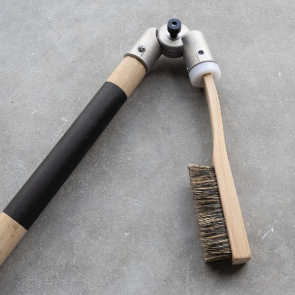 Fabricada em madeira maciça, esta vara oferece grande robustez e uma sensação natural ao toque. A sua cabeça articulada permite ajustar o ângulo da escova conforme o posicionamento da agarra, facilitando a limpeza mesmo em tetos, negativos ou zonas difíceis.