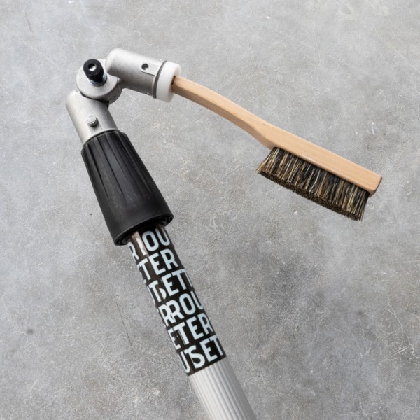 Conta com uma cabeça articulada, que permite ajustar o ângulo da escova para uma limpeza precisa de agarras e volumes. O sistema de bloqueio por rosca garante uma fixação firme dos segmentos.